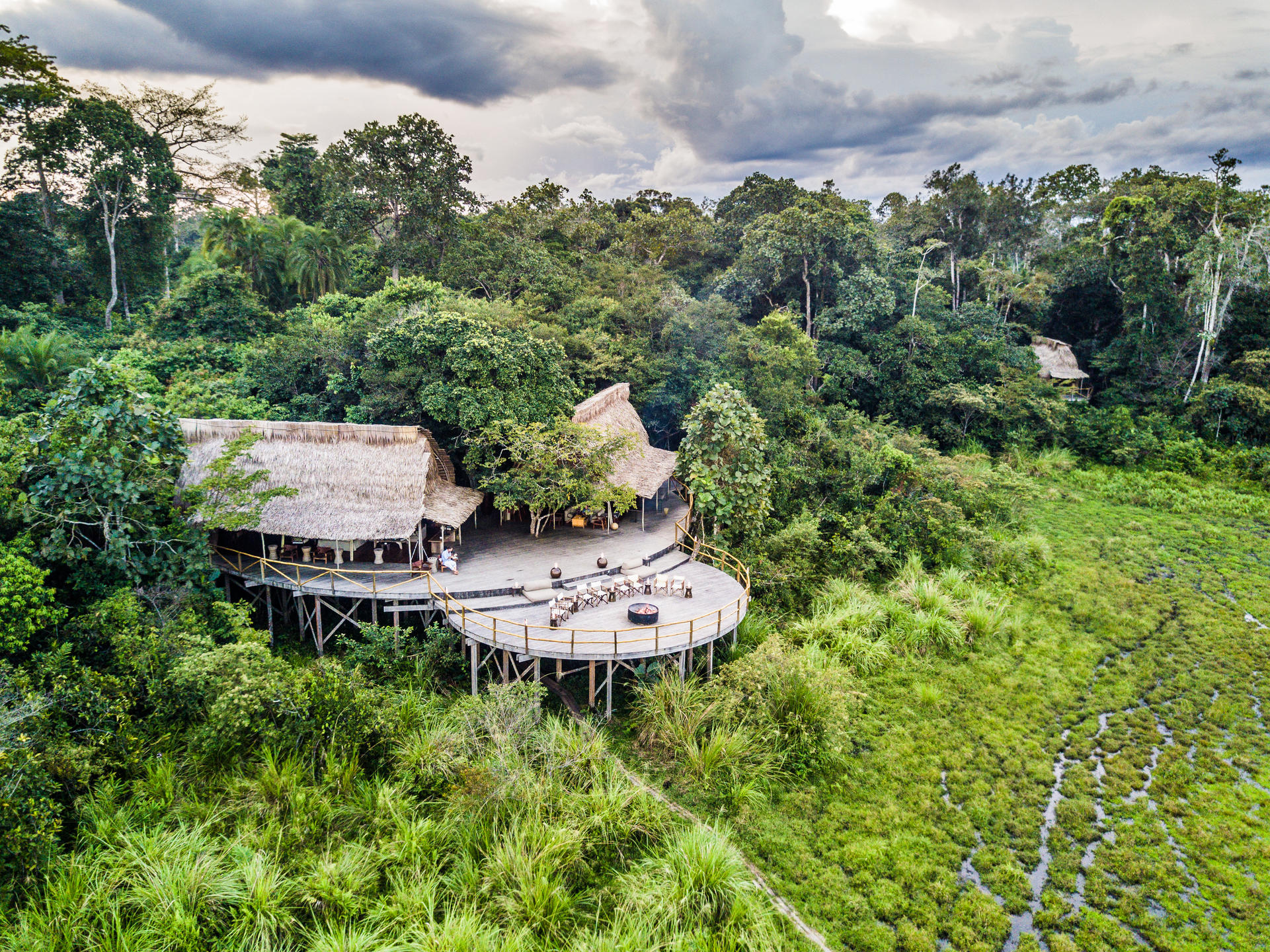 Lango sits on the edge of its own bai - a wide, shallow, mineral-rich clearing that draws forest elephants, buffalo, sitatunga and more from the surrounding forest at all hours of the day and night. Six treehouse-style rooms, a deck that hangs over the clearing, and a level of wildlife theatre that requires no effort on your part whatsoever. Just sit, and wait.